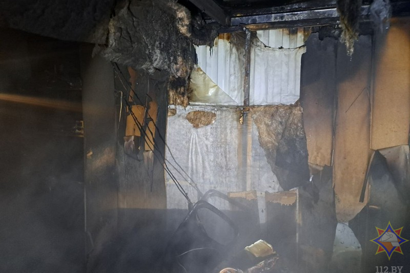 По прибытии к месту вызова происходило горение внутри металлической строительной бытовки. Спасатели оперативно ликвидировали возгорание, пострадавших нет. Огонь повредил имущество, стены и потолок покрыты копотью.