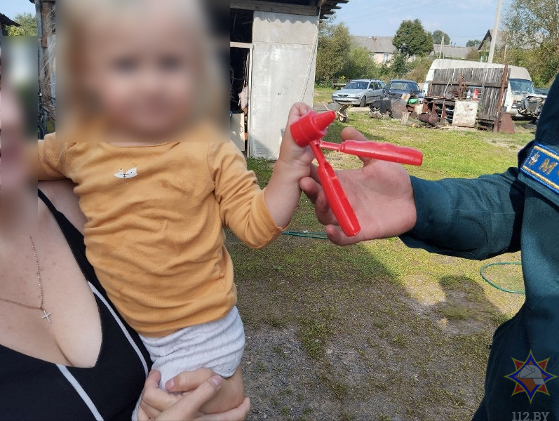 Самостоятельно освободить ребенка мама не смогла. Прибыв на место, спасатели увидели, что в пластмассовой игрушке зажат большой палец правой руки ребенка 2022 года рождения.