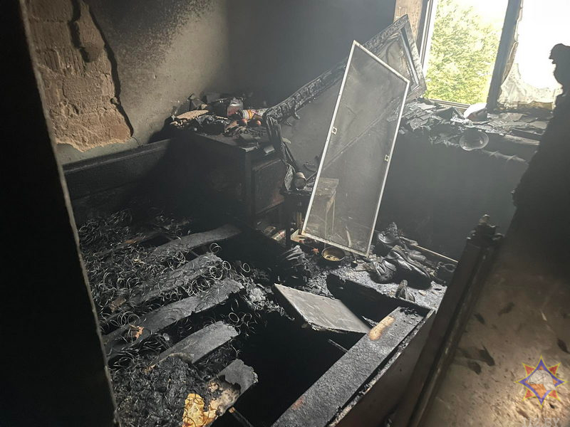 Эвакуация жильцов не проводилась. В результате пожара в одной из комнат повреждены стены, кровать, закопчен потолок и имущество. Причина пожара устанавливается.