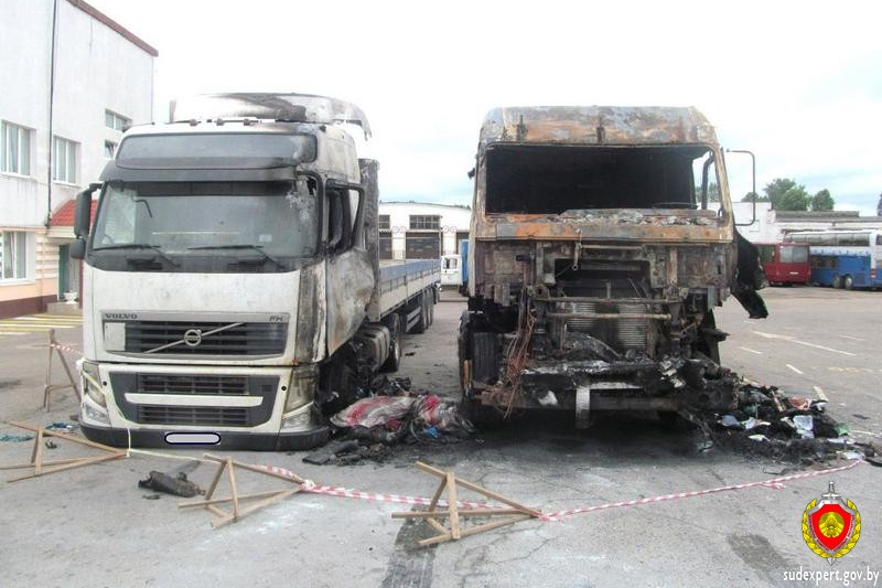 Судебные эксперты на месте происшествия осмотрели автомобили «МАЗ» и «Volvo» и установили, что характер и степень термических повреждений автомобилей свидетельствуют о расположении очага возгорания внутри кабины «МАЗа». При ее осмотре обнаружены и изъяты фрагменты электропроводки с оплавлениями, характерными для образования в результате воздействия электрической дуги короткого замыкания.