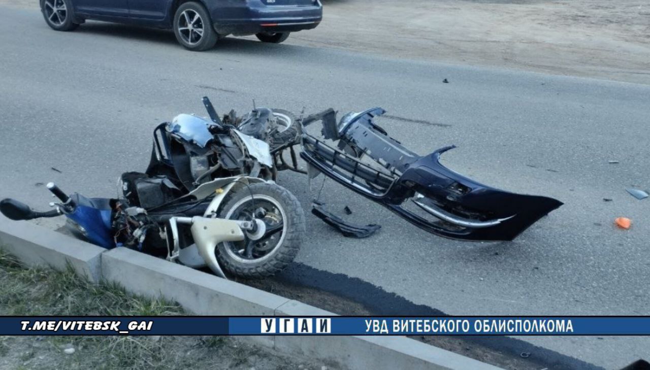В результате аварии водитель двухколеского транспортного средства получил телесные повреждения и был госпитализирован. По факту ДТП проводится проверка.
