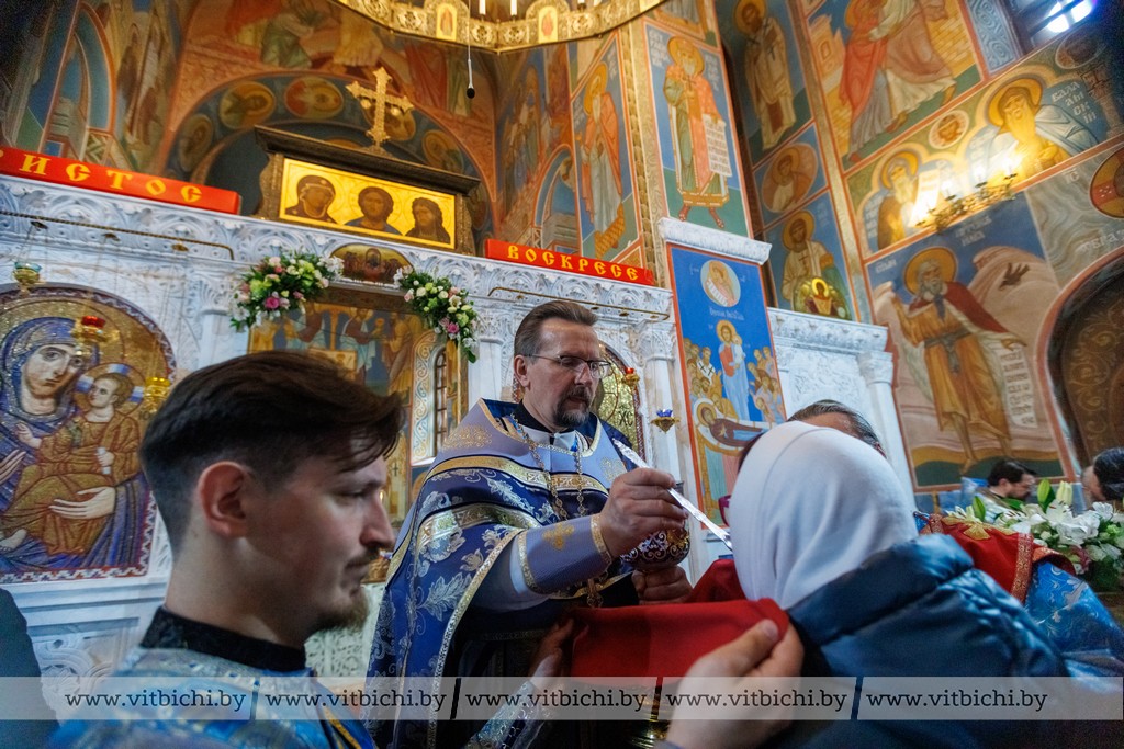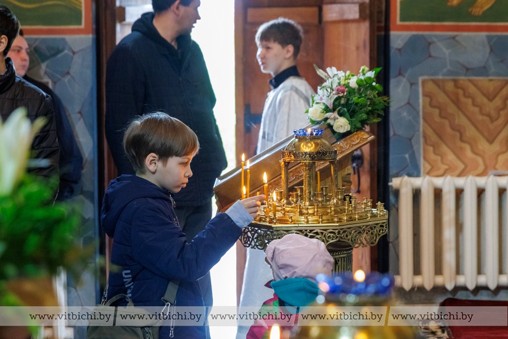 7 апреля / «Витьбичи» / Нина Писаренко /. У храма Благовещения Пресвятой Богородицы сегодня престольный праздник. По традиции именно здесь прошла божественная литургия, которую возглавил архиепископ Витебский и Оршанский Димитрий.