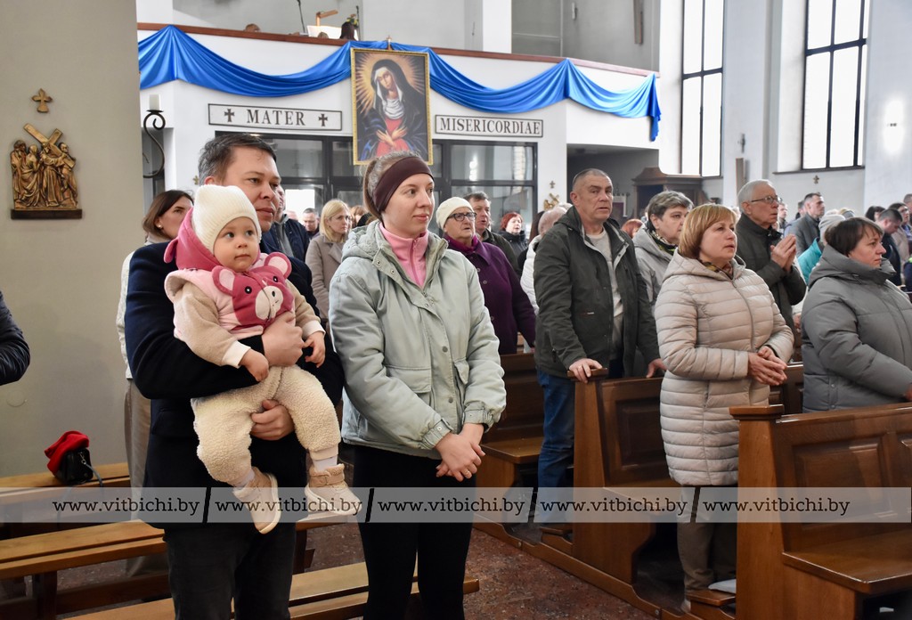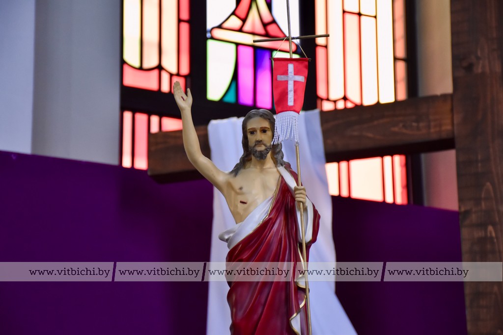 Бискуп Витебской диоцезии Олег Буткевич обратился к верующим с поздравлением. Он отметил, что в этот великий праздник Светлой Пасхи люди возносят молитвы о том, чтобы и дальше жить в мире и дружбе в нашем многоконфессиональном обществе. Нужно брать пример с Иисуса Христа в уважении к человеку как к созданию Господа. Бискуп поздравил не только католиков с Пасхой, но и православных с Вербным воскресеньем, подчеркивая единство нашего общества.