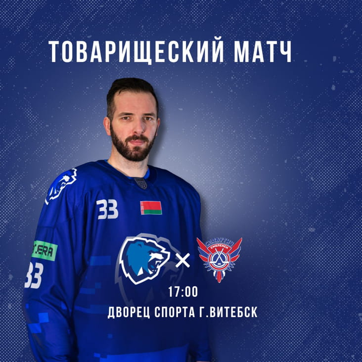 Встреча состоится в Ледовом дворце сегодня, 18 июля, в 17 часов по местному времени. Вход на матч свободный. Для тех, кто не сможет поддержать «медведей» на ледовой арене, будет организована трансляция на YouTube (ссылка появится перед матчем в телеграм-канале ХК «Витебск»).