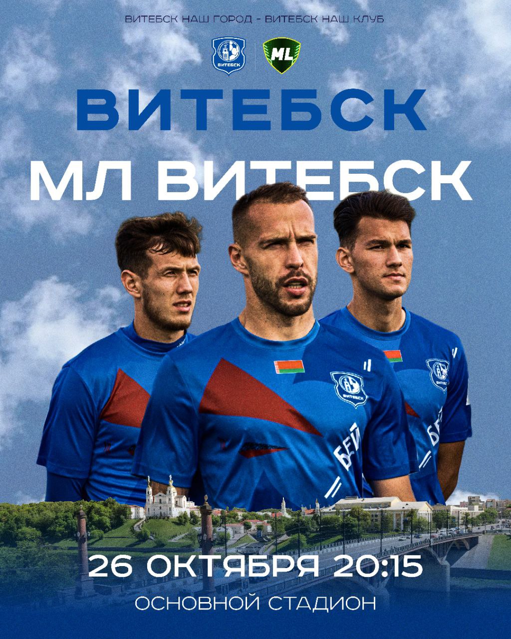 - 26 октября, 20:15. Чемпионат Беларуси по футболу среди мужских команд высшей лиги. На поле сойдутся ФК «Витебск» и ФК «МЛ Витебск».