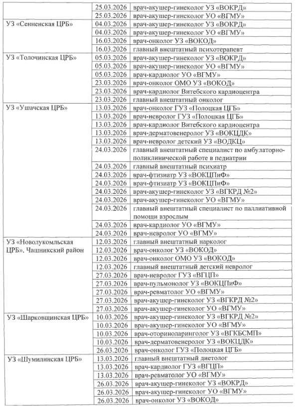 В марте 2026 года жители районов Витебской области смогут получить консультации ведущих врачей-специалистов без поездки в областной центр. Главное управление по здравоохранению Витебского облисполкома утвердило сводный график выездов врачей в учреждения здравоохранения региона для оказания лечебно-консультативной помощи населению.