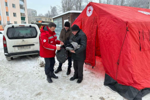 Помощь в морозы от Красного Креста: чай, еда и тёплая одежда в мобильном пункте обогрева для тех, кто остался без дома