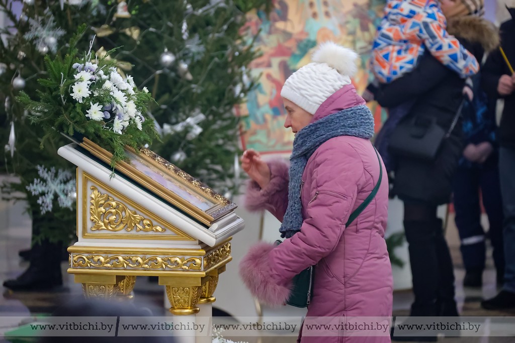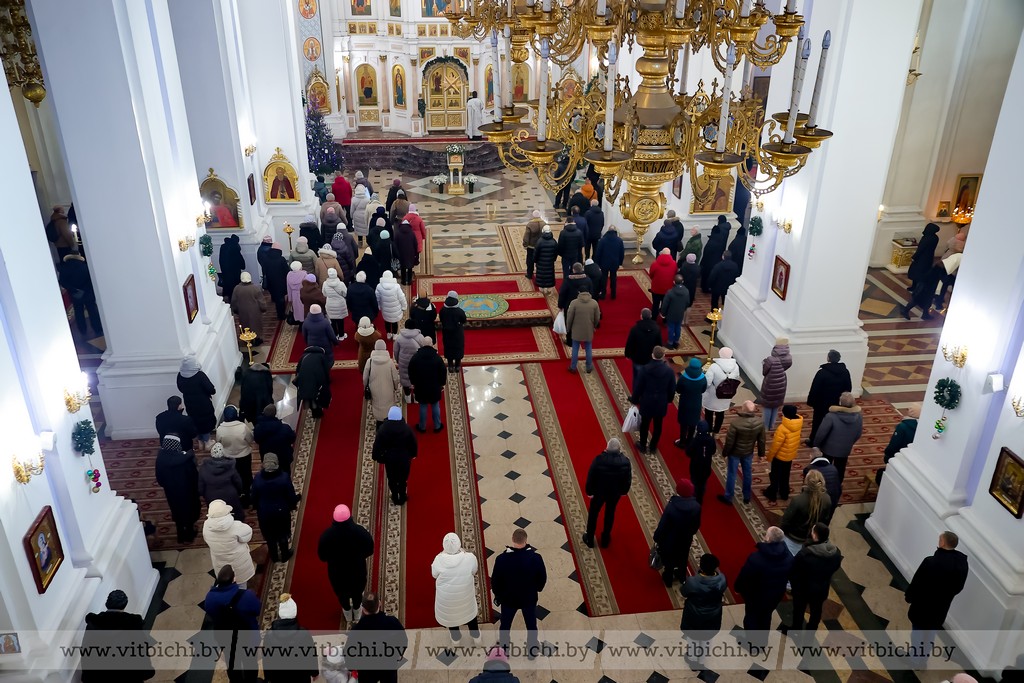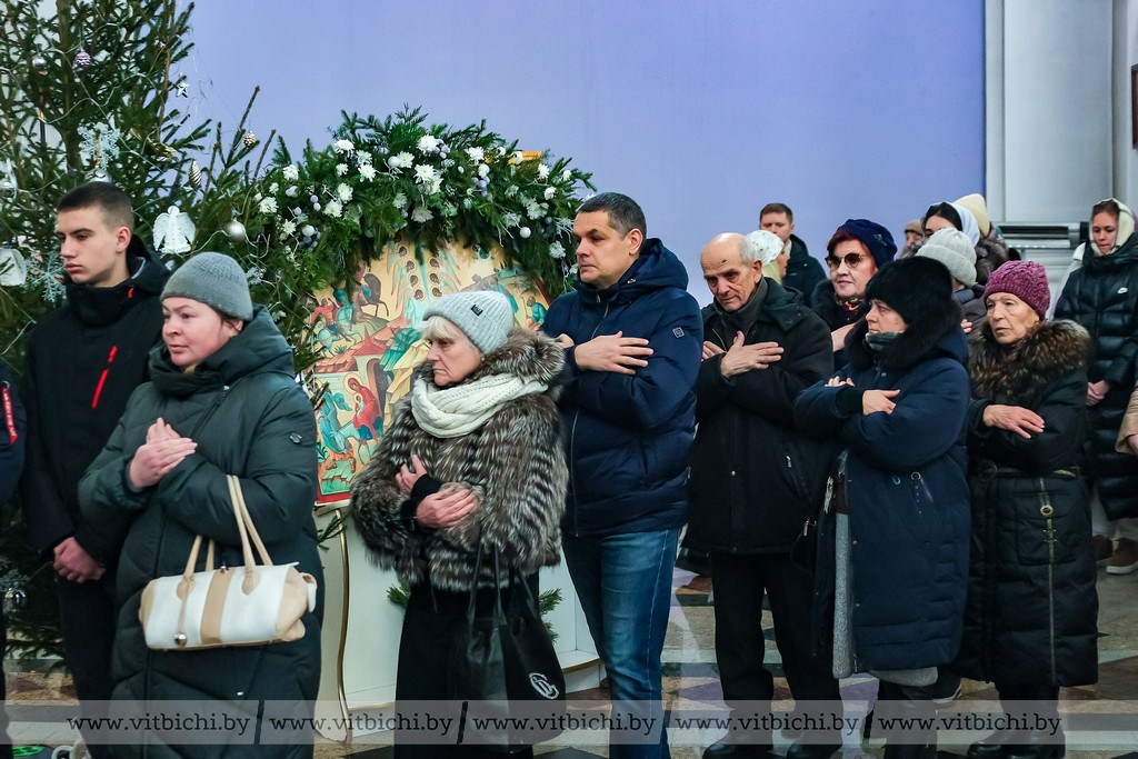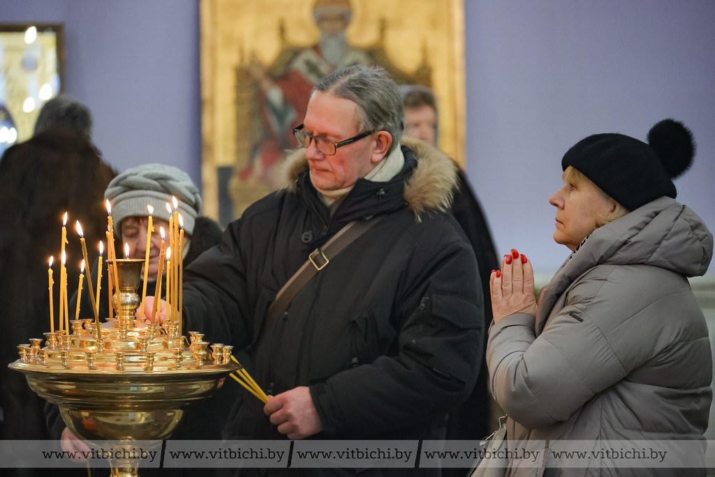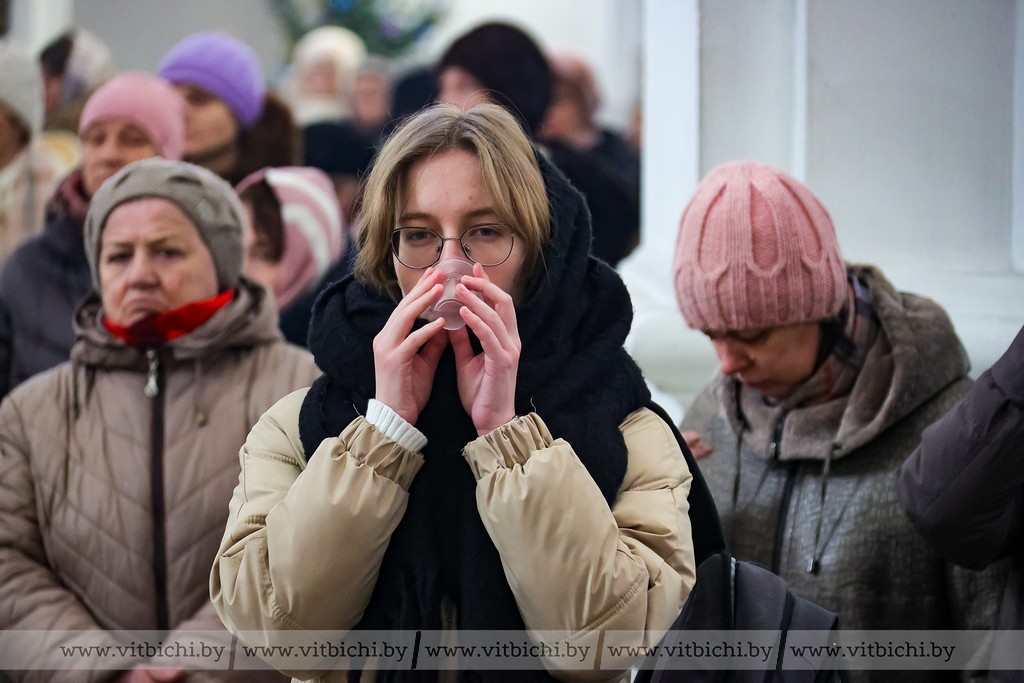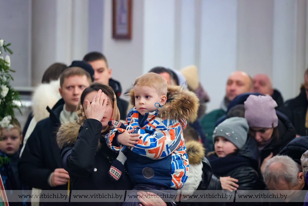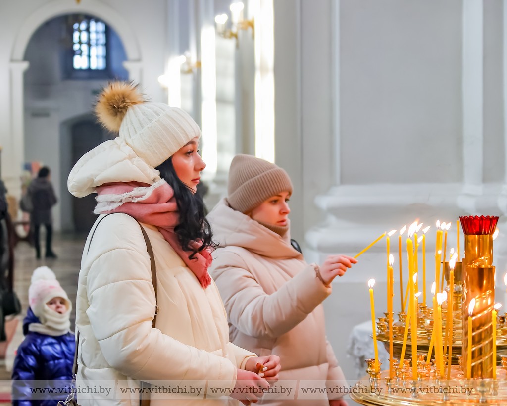 Мороз не стал помехой для жителей севера. В кафедральном соборе собрались витебчане всех возрастов, приходили парами и целыми семьями.