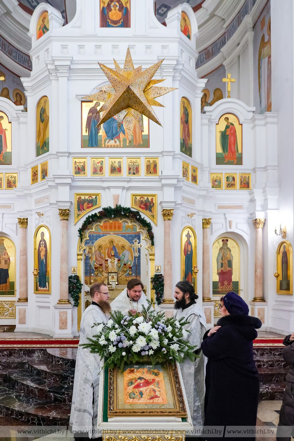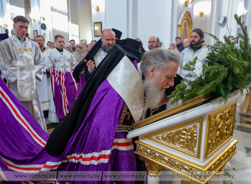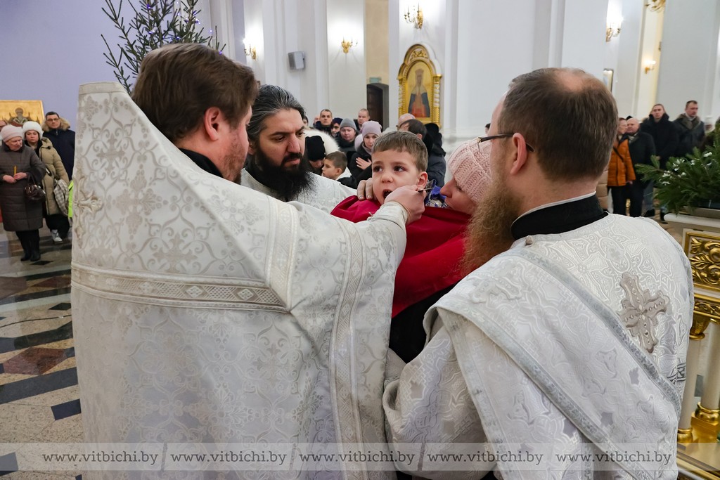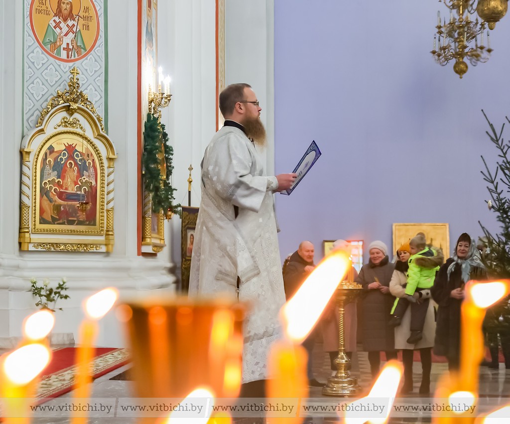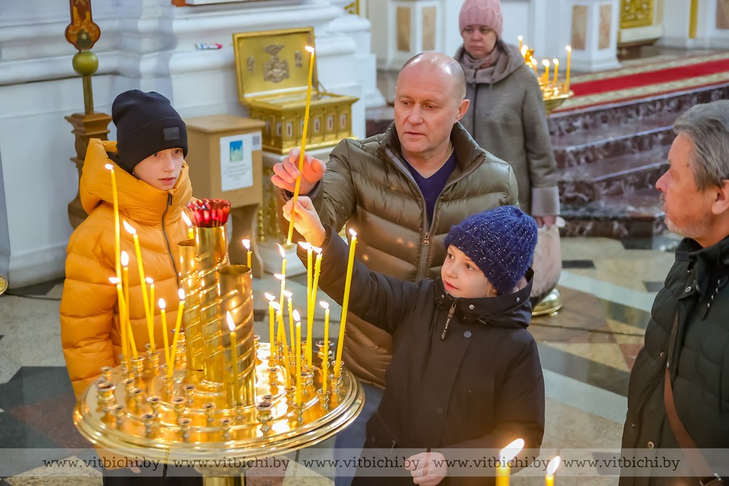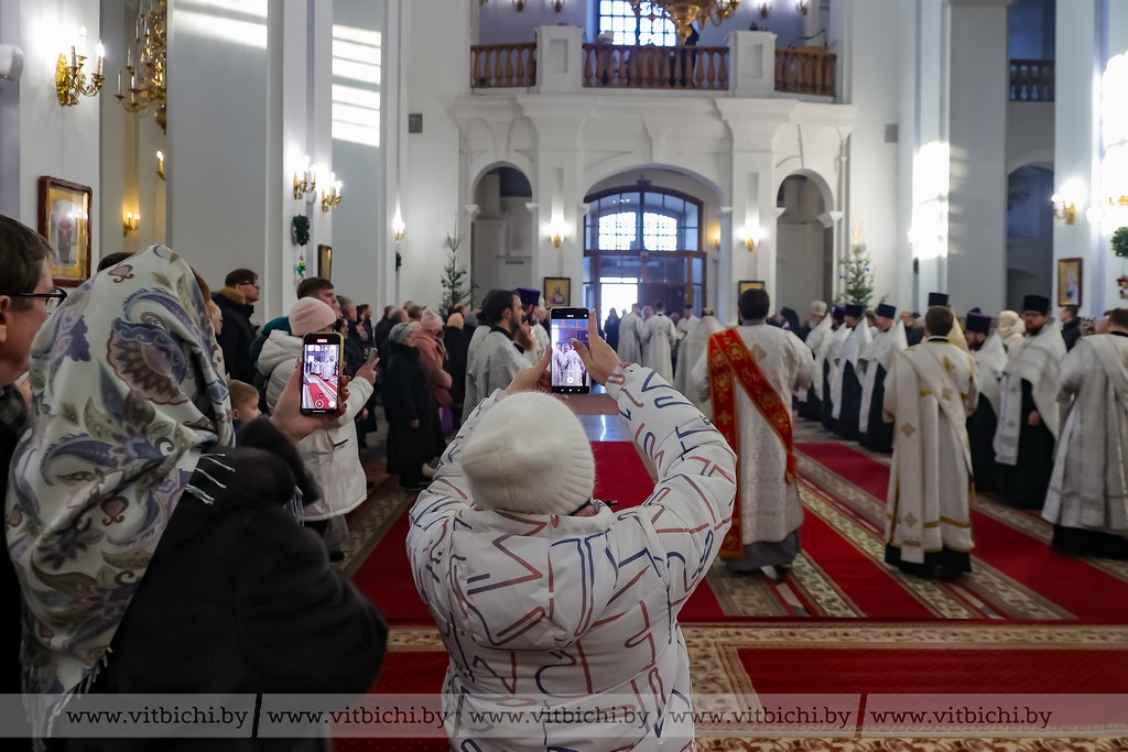 Мороз не стал помехой для жителей севера. В кафедральном соборе собрались витебчане всех возрастов, приходили парами и целыми семьями.