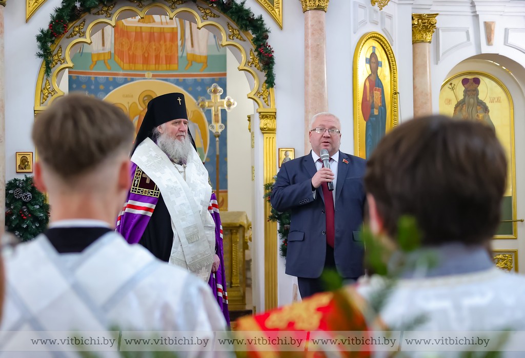 Разделить радость светлого праздника с православными верующими пришли первый заместитель председателя облисполкома Анатолий Линевич, председатель Витебского областного Совета депутатов Владимир Терентьев.