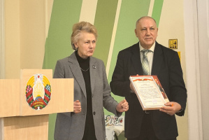 Председатель областного Совета депутатов Владимир Терентьев, председатель городского Совета депутатов Владимир Белевич и союзные парламентарии возложили цветы к вечному огню мемориального комплекса в честь советских воинов, партизан и подпольщиков Витебщины на площади Победы.
