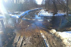 На проблемный участок дороги привезли и уложили битый кирпич, сверху подсыпали песчано-гравийную смесь. Работы провели во время тактико-специальных учений по предупреждению чрезвычайных ситуаций при возникновении паводка.