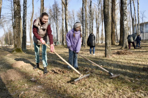 Городской субботник в Витебске: главы районов, волонтёры и семьи наводили порядок в парках и на мемориалах в Первомайском и Железнодорожном районах