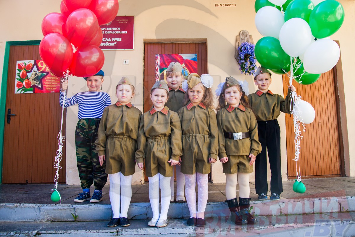 Памятный стенд с фотографиями военных лет оформили в яслях-саду № 85. Воспитанники в стилизованной военной форме читали стихи о Победе, а в конце праздника ребята запустили в небо белые, красные и зеленые шары.