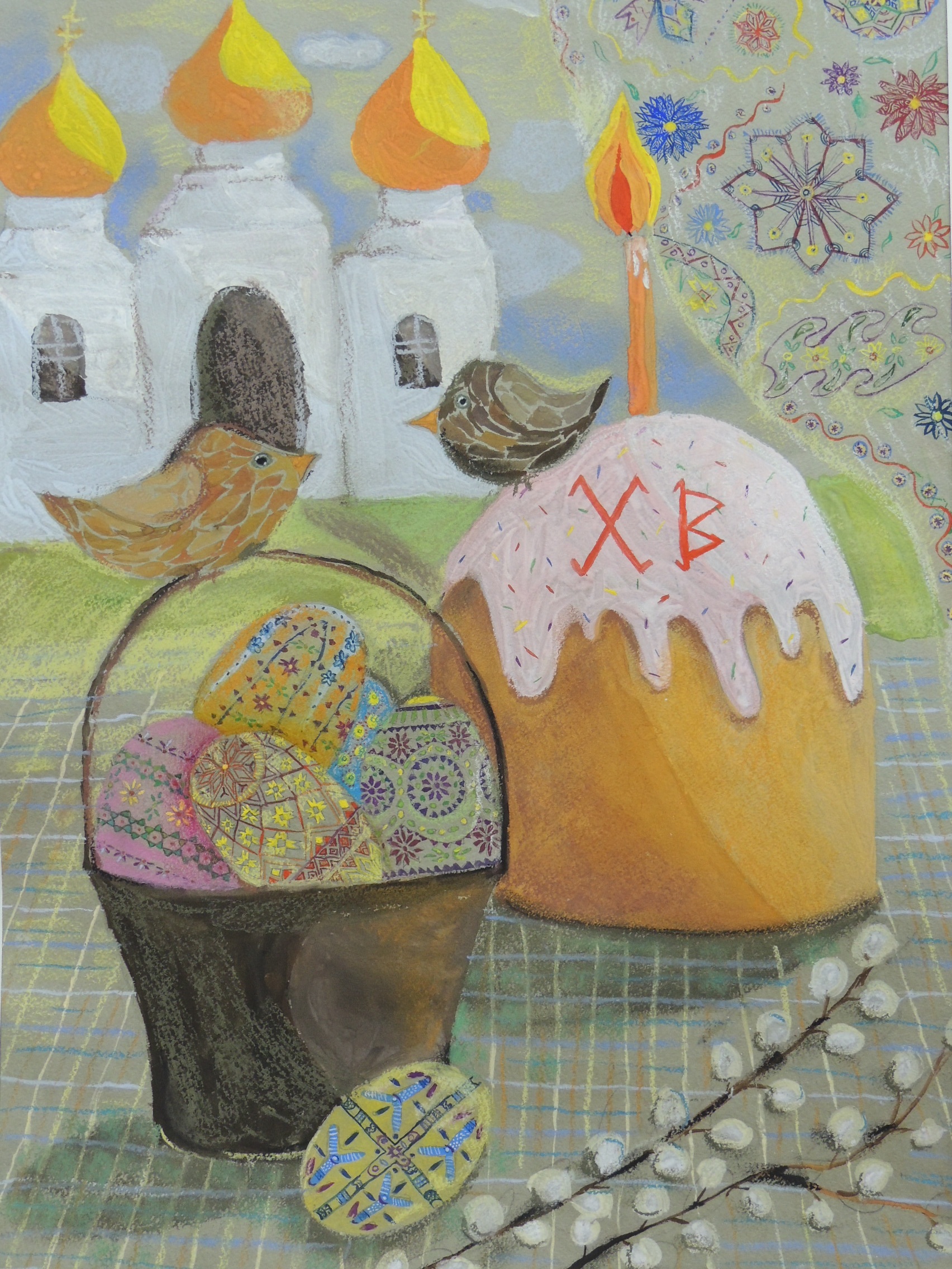 Работы выполнены в технике графики, живописи, коллажа, резьбы по дереву, батика, керамики. Их объединяет то, что все они сделаны с душой и любовью. В этом году ребята посвящали свои работы не только светлому дню Пасхи, но и 75-летию Победы.