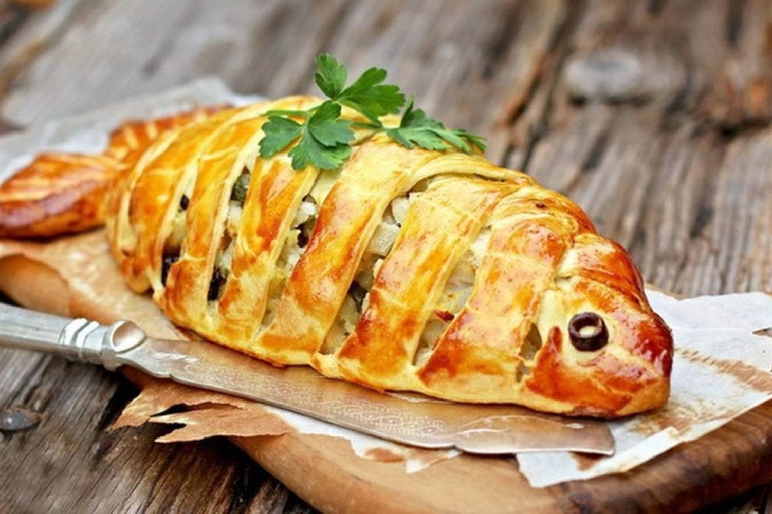 Подошедшее тесто обмять, снова оставить на 30 минут подходить, а затем раскатать в пласт, смазать майонезом. На середину пласта выложить слоями начинку: рис, яйца, рыбу с луком. Края надрезать полосками и переплести в виде плетенки, оставить на 30 минут для расстойки, смазать яйцом. Выпекать в духовке при 180 градусах минут 30–40. Готовый пирог смазать сливочным маслом, накрыть салфеткой и дать постоять еще минут 15.