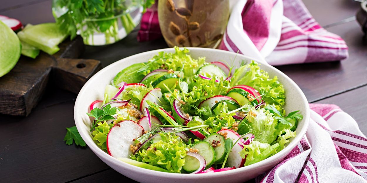 Для него потребуется: редис – по усмотрению, 1 красная луковица, 1 желтый болгарский перец, 1 огурец, 1 помидор, петрушка или другая зелень по вкусу.