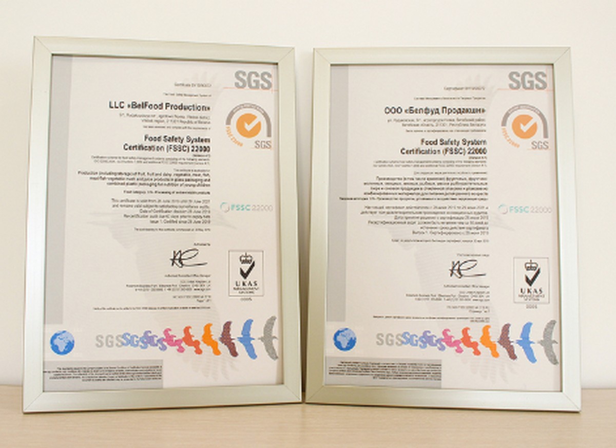 Зачастую покупатель не обращает внимание на наличие сертификатов. Тем не менее это не простой «набор цифр». Компания «Белфуд Продакшн» – единственная в Беларуси прошла международную сертификацию пищевой безопасности FSSC 22 000 на производство детского питания. Этот знак качества выдан швейцарской международной компанией SGS S.A. (Société Générale de Surveillance), крупнейшим в мире органом по сертификации. Контроль за готовой продукцией проводит не только собственная лаборатория предприятия и государственные лаборатории Министерства здравоохранения Республики Беларусь, но и европейские партнеры «Белфуд Продакшн».
