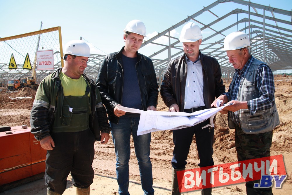 На строительной площадке работает генподрядчик ОАО «Пинсксельхозстрой». Все необходимые работы идут согласно графику. Мастер СПМК-33 Артем Ворошень подчеркивает, что на Витебщине – это первый крупный и уникальный объект, который реализует их организация. Подобные объекты приходилось строить только в Брестской области.