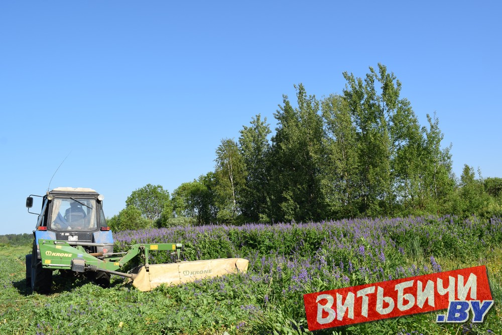 За дзень Андрэй Смоляр паспявае скасіць да дзесяці гектараў палеткаў. Галега роўна кладзецца ў пракосы, пад якімі ходзіць ветрык, а зверху прыпякае сонейка. Падвяленую масу варушаць граблямі. Дзень-другі – і прыедзе Дзмітрый Базар з прэс-падборшчыкам, каб круціць сена ў рулоны. Яго нарыхтоўваць з галегі выгадна, бо лісты пры сушцы не асыпаюцца, а корм для жывёлы атрымліваецца каштоўны – з мікраэлементамі і вітамінамі. Захоўваюцца яны і ў сенажы – траншэі (галегу ўперамешку са злакавымі травамі) будуць класці ля ферм Макаўе і Мішкавічы.
