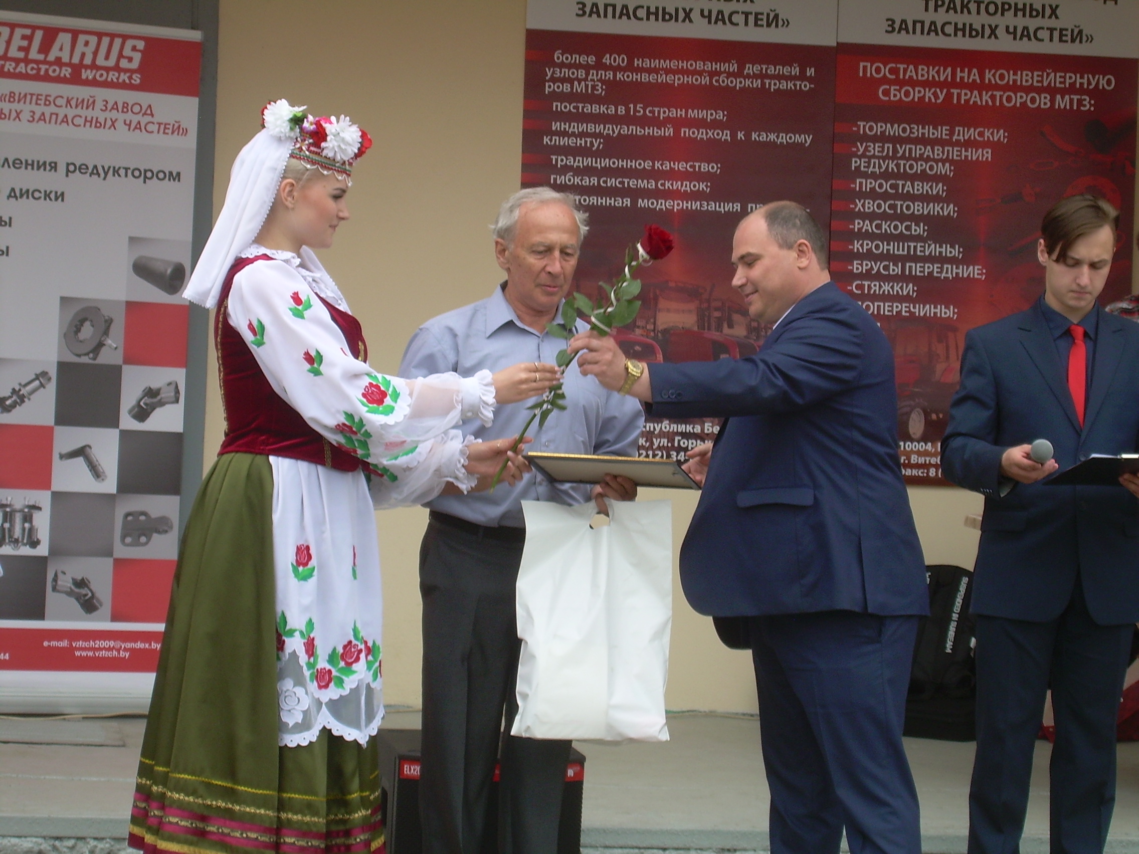 Кульминацией Дня открытых дверей стала церемония награждения работников предприятия. Заместитель главы администрации Первомайского района Марина Новицкая отметила, что завод находится на правильном пути развития, его продукция востребована и в Беларуси, и за рубежом. Марина Владимировна передала Благодарность председателя Витебского облисполкома за активное участие в ветеранском движении, значительный личный вклад в патриотическое воспитание подрастающего поколения и в связи с 75-летием освобождения Беларуси от немецко-фашистских захватчиков председателю первичной ветеранской организации, председателю профкома завода Галине Зайковой. Грамотой ОАО «МТЗ» за многолетний добросовестный труд, активное участие в общественной жизни предприятия и в связи с празднованием 73-й годовщины со дня основания Минского тракторного завода награжден шлифовщик 6-го разряда инструментального участка ОАО «ВЗТЗЧ» Андрей Азаров, благодарностью ОАО «МТЗ» поощрен электрогазосварщик 6-го разряда энергомеханического отдела Олег Семейников. Грамотой ОАО «ВЗТЗЧ» награждены водитель автомобиля 5-го разряда отдела транспорта, сервиса и погрузо-разгрузочных работ Дмитрий Лютиков, оператор станков с программным управлением 4-го разряда механосборочного участка №1 Руслан Круковский, контролер станочных и слесарных работ 5-го разряда отдела технического контроля и управления качеством Жанна Жуковец, станочник широкого профиля 4-го разряда механосборочного участка № 3 Вячеслав Головнев.