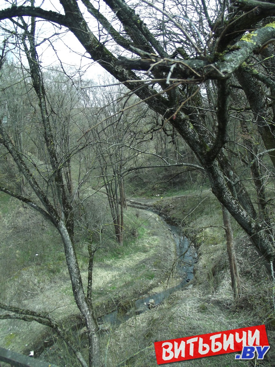 Каля таго ж медуніверсітэта сыходзім па лесвіцы ўніз і пераходзім на «праўдзінскі» бераг. Праходзім колькі дзясяткаў метраў па сцежцы, якая дазваляе жыхарам недалёкіх жылых дамоў значна скараціць свой шлях. Погляд спыняецца на перакінутых праз ручай «тэхналагічных» ліянах — скрутку кабеляў. Траншэю тут жа падземную праблематычна пракапаць. Вось так і спалучыліся «джунглі» горада з жывой прыродай.