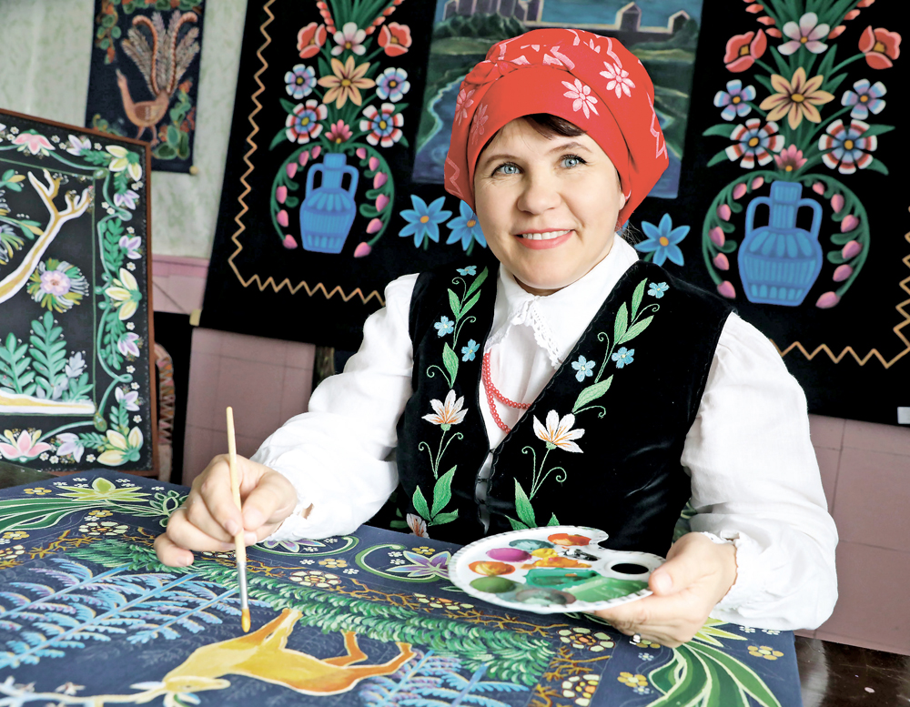 — Когда я сюда пришла, первое, на что особенно обратила внимание, — коллекция рисованных ковров местного мастера Галины Таляронок из фондов Дома ремесел, — рассказывает Светлана Сковырко. — Подумалось, что продолжение славных традиций Глуботчины по возрождению искусства рисованных ковров — дело увлекательнейшее и полезное.
