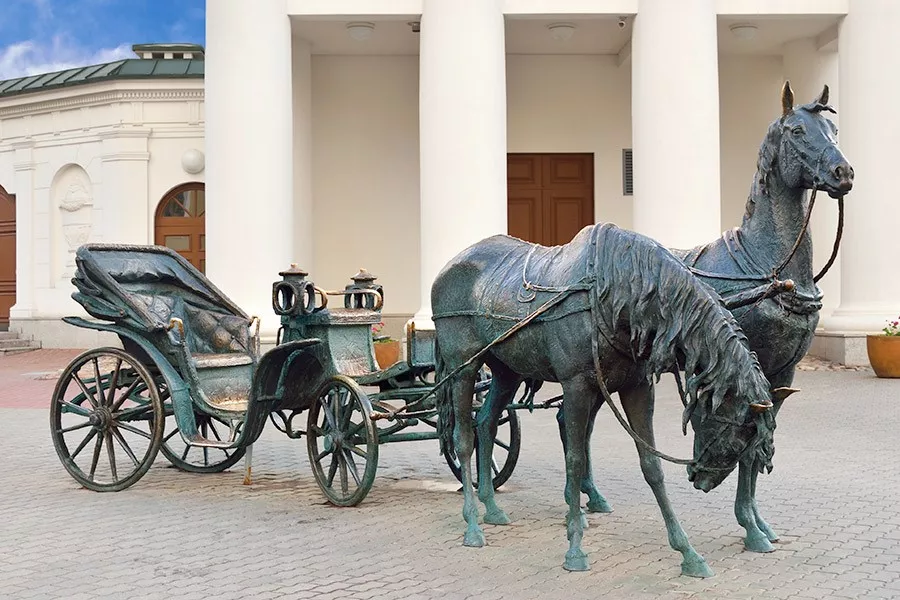 В Минске на площади Свободы у ратуши находится едва ли не самый любимый столичный селфи-памятник: копия кареты-двойки XIX века, на которой ездил первый минский губернатор Захарий Корнеев. Люди старшего поколения позируют, сев в саму коляску, а детвора согласна быть и пассажирами, и возницами, и даже наездниками бронзовых скакунов. Считается, что сидение в «Экипаже» приносит удачу в путешествиях, а фотографии молодоженов на этом месте обеспечивают удачу в семейной жизни.