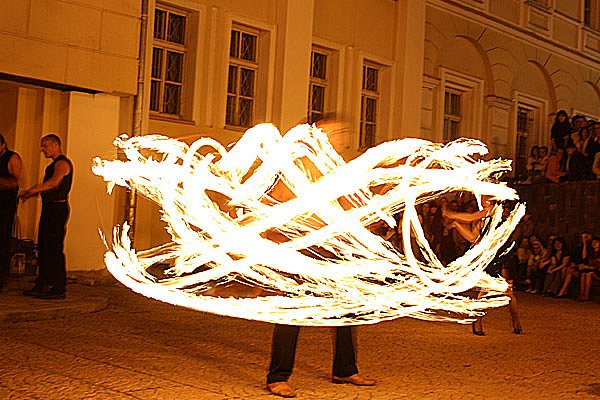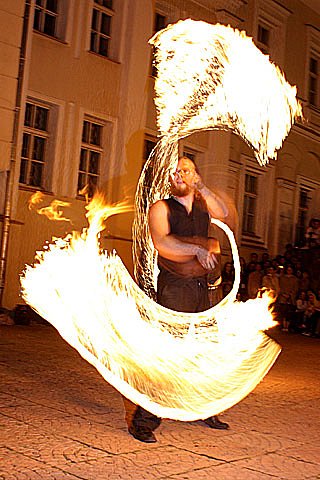 — Мы не перестаем ставить перед собой смелые, может, даже несбыточные цели, — рассказал лидер и инициатор создания группы AGNI show Василий Кузнецов, который один из первых в нашем городе начал «играть с огнем». — К примеру, мечтаем поработать с группой Prodigy или получить разрешение на использование их музыки в наших шоу. А, как известно, если чего-нибудь очень хочешь — это обязательно сбудется. Опыт работы со звездами у нашего коллектива хоть и небольшой, но есть. Мы выступали с андеграундной молодежной группой «Дай дорогу». Причем делали огненную постановку под самую динамичную и ритмичную их композицию «Прыгай в коляску».