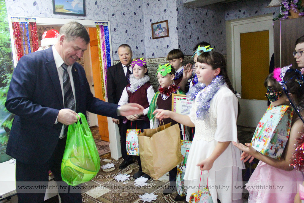 Среди тех, кто поздравил ребят, был и председатель Витебского районного Совета депутатов Виктор Дорожкин, который передал каждому подарки в соответствии с увлечениями детей, кому-то спиннинг, кому-то набор для рисования и другие полезные вещи.