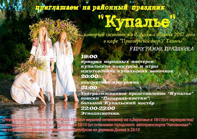 В кафе «Приозерный двор у Ганны» в деревне Должа с 19.00 до 23.00 — районный праздник «Купалье».
