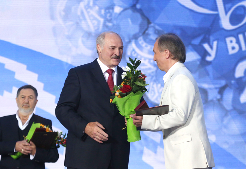 Затем Александр Лукашенко вручил премии Союзного государства в области литературы и искусства за 2015-2016 годы. На этот раз лауреатами стали: народный артист СССР, художественный руководитель и главный дирижер Государственного академического Большого симфонического оркестра имени Чайковского Владимир Федосеев; авторский коллектив в составе автора идеи, архитектора, протоиерея, настоятеля Всехсвятского прихода Минска Федора Повного; скульптора, заслуженного деятеля искусств Беларуси Владимира Слободчикова; архитектора, лауреата Государственной премии Беларуси Игоря Морозова. Такой же премии удостоен авторский коллектив в составе народного артиста Беларуси, художественного руководителя ансамбля «Сябры» Анатолия Ярмоленко, композитора, заслуженного деятеля искусств Беларуси Олега Елисеенкова, поэта, обладателя литературной премии «Золотой купидон» Ивана Юркина за альбом «Где калина цвела».