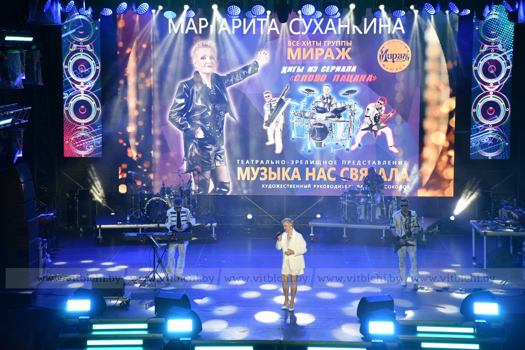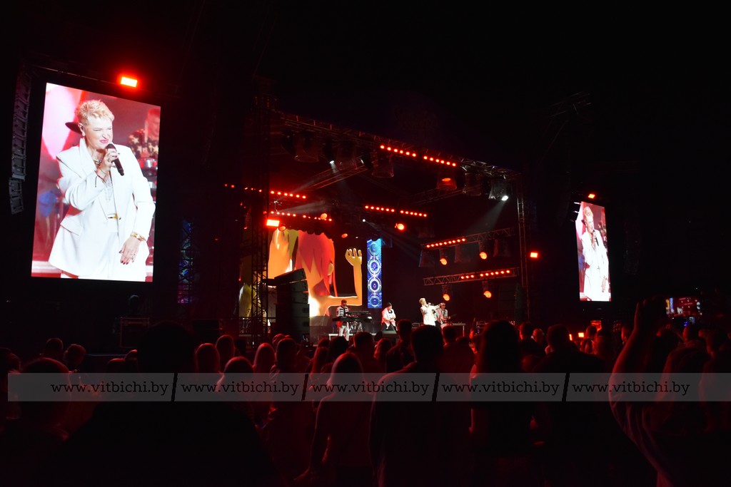 Сцена стадиона в эту ночь принадлежала звездам эстрады: группа «REFLEX» зарядила зал своими хитами, Маргарита Суханкина, бывшая солистка легендарного «Миража», покорила зрителей фирменным вокалом, а ретро-трио «Розовые розы» добавило в программу нотки ностальгии. Не остались без внимания и другие исполнители – группа «Cosa Nostra» и белорусский артист Дмитрий Санкович, чьи выступления стали яркими моментами вечера.