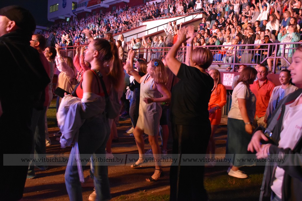 13 июля / «Витьбичи» / Дарья Потапенкова /. В ночь с 12 на 13 июля стадион ЦСК в Витебске превратился в огромную танцплощадку в рамках «Славянского базара». Мероприятие «Душевное радио» в формате девичника собрало тысячи зрителей, готовых танцевать до утра под хиты 90-х и 2000-х.