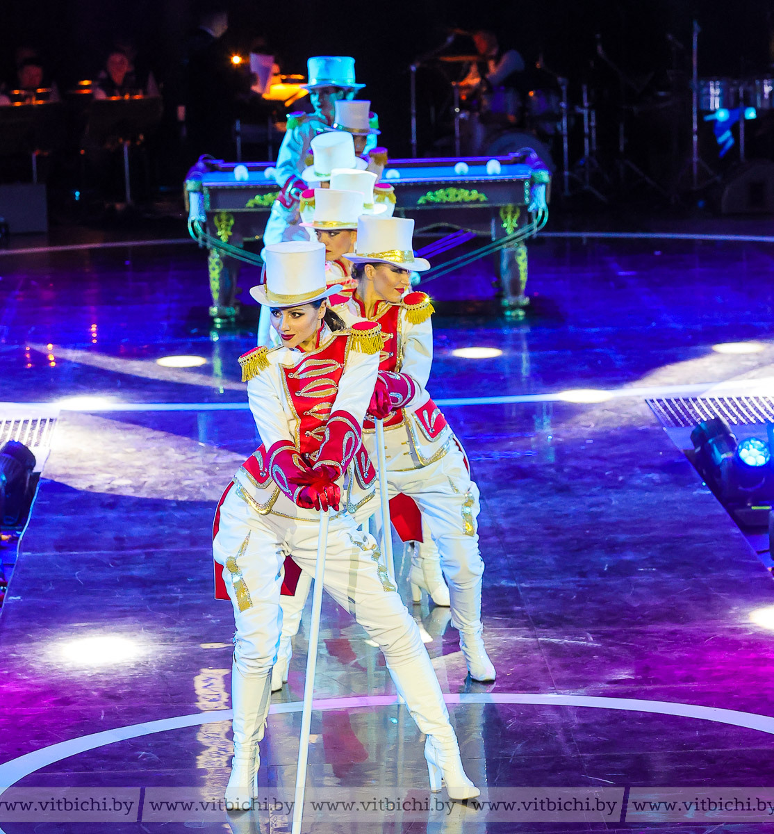 Тон представлению с первых минут задал балет цирка под управлением главного балетмейстера Елены Батян. Танцовщицы, появляясь между номерами в образах див, экзотических цветов, скромных пастушек, дополняли выступления артистов.