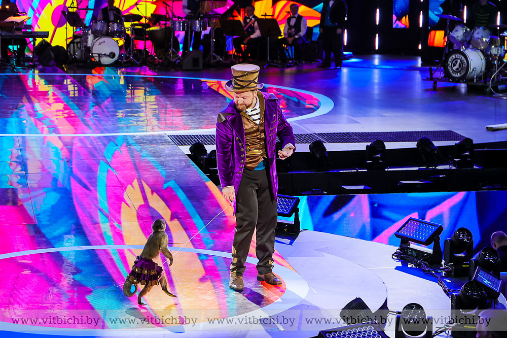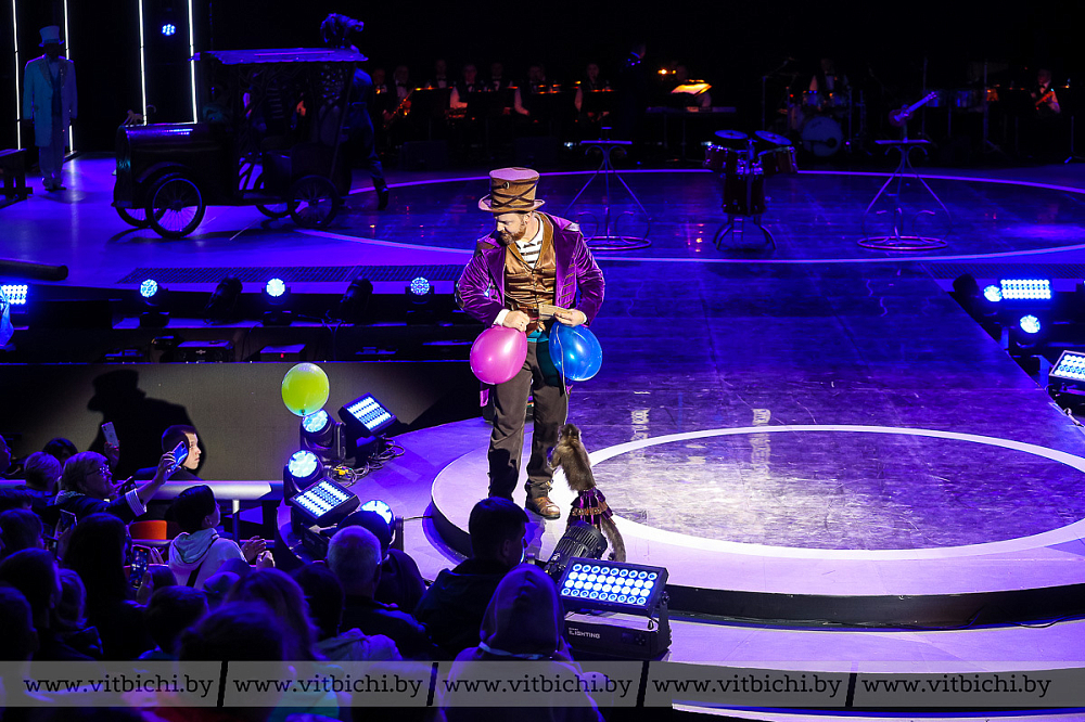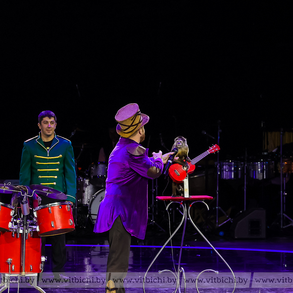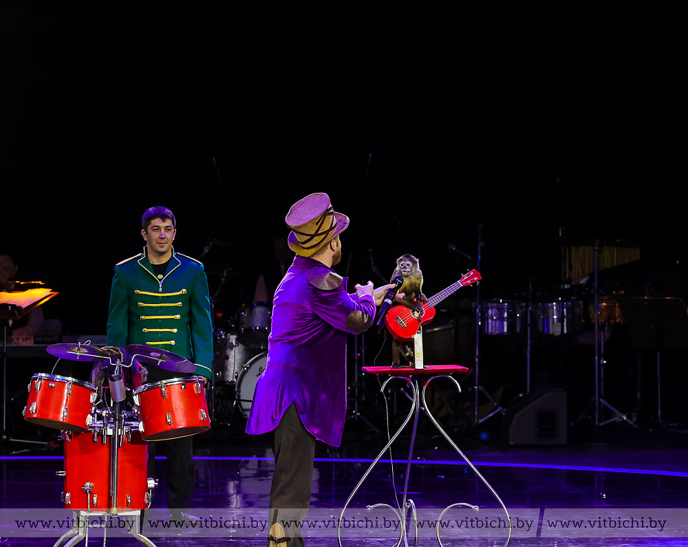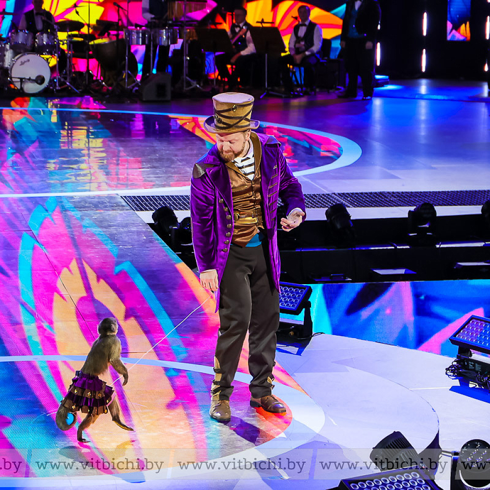 Их номера перемежались с выступлениями дрессировщиков животных: обезьянок — представителя цирковой династии Андрея Теплыгина — и катающихся по полосе препятствий на скейтах собачек под руководством Анжелики Обертаевой. Умиление и смех сопровождали их появление на сцене.