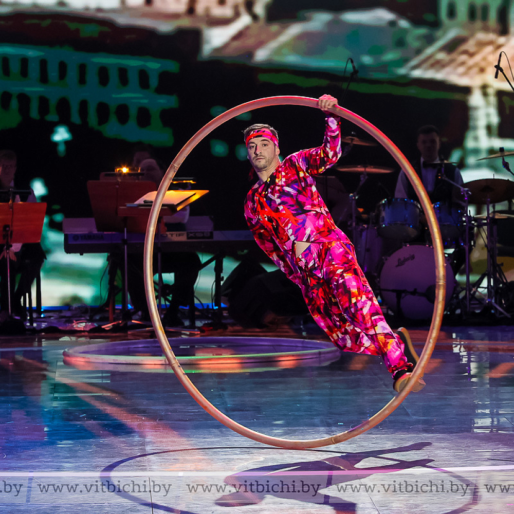 А как не отметить обаяние ведущего программы «Этот волшебный цирк» артиста-конферансье Дмитрия Александрова! Он с любовью рассказал историю белорусского цирка, историю одной большой семьи, куда стремится влиться и юное поколение. Недаром в финале представления выступила цирковая студия Дворца культуры Минского автозавода «Романтики».