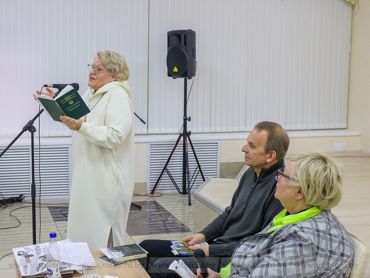 Поэт Елена Федяева, бард Инна Соломахо из Новополоцка исполнила написанную ею после прочтения нового сборника Николая Наместникова песню «Листопад», соединив в ней несколько стихов, и другие участники творческого вечера юбиляра.
