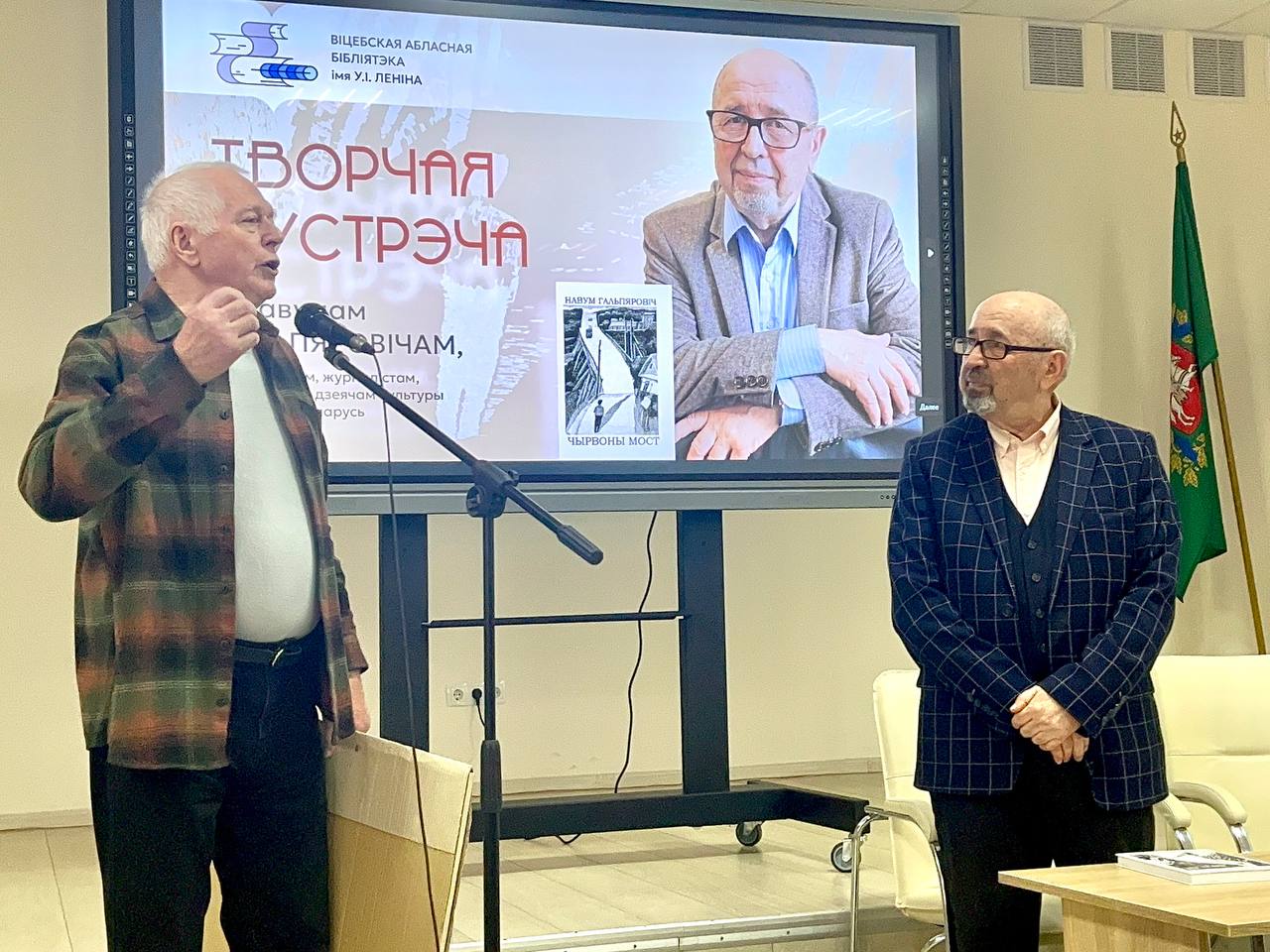 Ва ўстанове сабраліся прыхільнікі беларускай літаратуры, родныя і сябры вядомага пісьменніка, журналіста і заслужанага дзеяча культуры Рэспублікі Беларусь Навума Гальпяровіча. У самым пачатку аўтар расказаў пра свой творчы шлях – ад таго моманту, калі першы верш убачыў свет на старонках наваполацкай газеты «Хімік», да сённяшняга творчага багажу з разважаннямі пра тое, якое месца ў ягоным жыцці належыць беларускай мове.