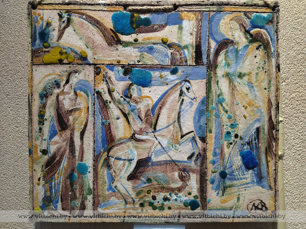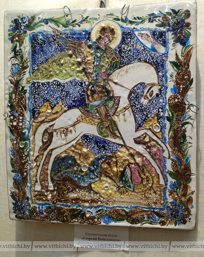 В культурно-историческом комплексе "Золотое кольцо города Витебска "Двина", где мастер работает многие годы, экспонируется большая коллекция произведений, выполненных в технике майолики, фарфора, шамота, бисквита. Это панно, блюда, оригинальные керамические композиции. Впервые автор представила майоликовые иконы.