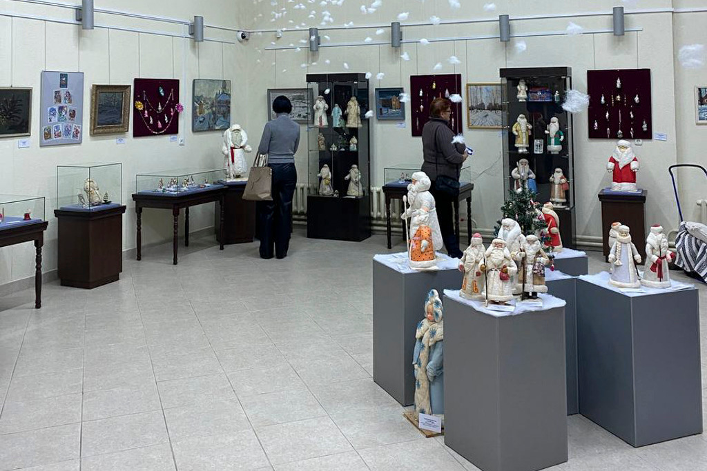 На выставке "В царстве Деда Мороза" представлены игрушки из частного собрания Натальи Ковалёвой. В прошлом учитель иностранных языков, Наталья Ковалёва занимается коллекционированием 12 лет. Сегодня в собрании более 5000 ёлочных игрушек разной тематики. Среди них винтажные, современные, крайне редкие времен Великой Отечественной войны и другие.