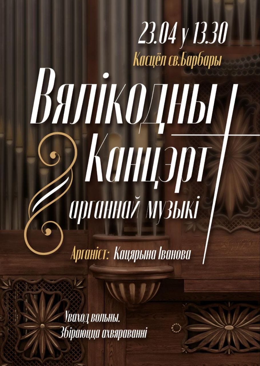 23 апреля можно услышать удивительную органную музыку на концерте с участием Екатерины Ивановой в костеле Святой Варвары. Начало в 13.30.