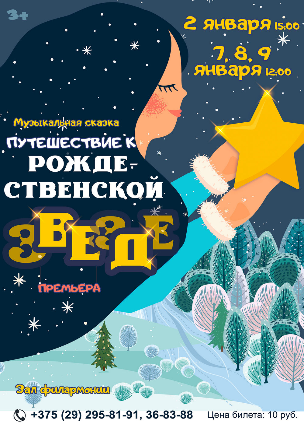Как не посочувствовать жителям сказочного королевства, которые вот уже 17 лет лишены такой возможности? А виновата во всем недобрая волшебница, решившая захватить власть в королевстве. Но зло не может торжествовать вечно. И свет Рождественской звезды вернет праздник всем добрым людям. А сказки никогда не обманывают. И для того, чтобы все вокруг были счастливы, достаточно иметь доброе, храброе и справедливое сердце. Так говорится в сказке «Путешествие к Рождественской звезде», которую можно увидеть только на сцене Витебской областной филармонии.