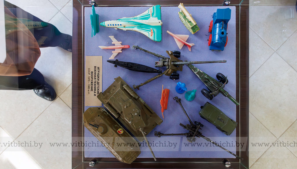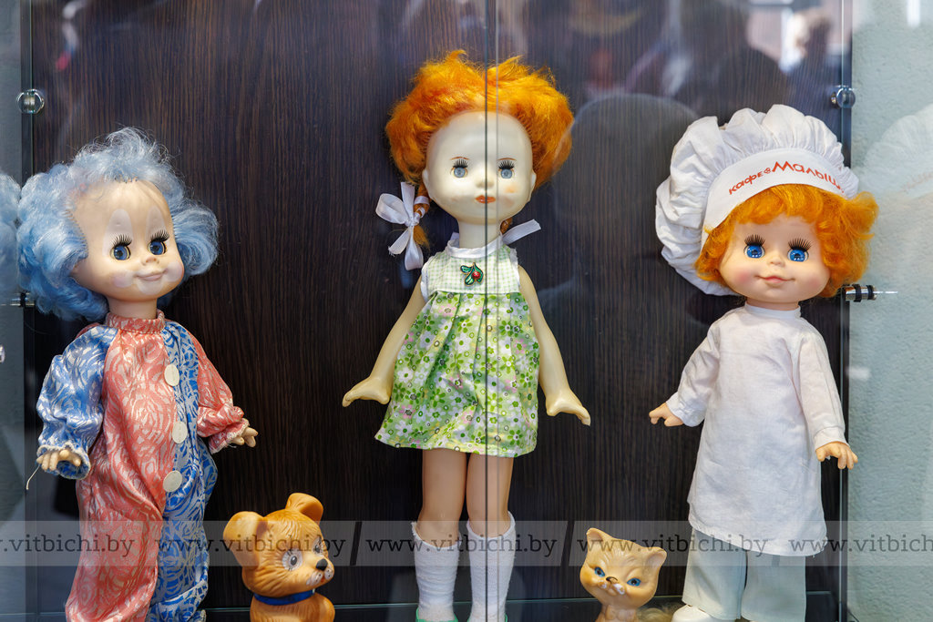 На выставке – огромное многообразие детских игрушек 1970-1980-х годов, которые, конечно же, во многом отличаются от игрушек сегодняшней детворы. А в те годы их выпускали такие советские фабрики, как Фрунзенская «Ак-Тимен», Краснодарская «Радуга», Новосибирский «Пионер», фабрика «Игрушка» в Вятке, «Ленигрушка» (Ленинград) и даже Охтинский химический завод «Охтален». Оказывается, у пупсов и коньков-качалок, плюшевых мишек и обезьянок, у водных пистолетов, тряпичного Буратино, резинового Крокодила Гены и Карлсона были авторы и создатели! К сожалению, их имена ничего не говорят сегодняшнему жителю, как, впрочем, оставались они в тени своих знаменитых героев и в свое время. И все же авторы экспозиции считают, что их нужно вспомнить, ведь только добрые, талантливые люди могли придумывать такое чудо для детей – игрушку! Это были советские художники и мастера Елена Борисова, Мария Киселёва, Лев Сморгон, Лев Разумовский, Марианна Мотовилова и многие другие.
