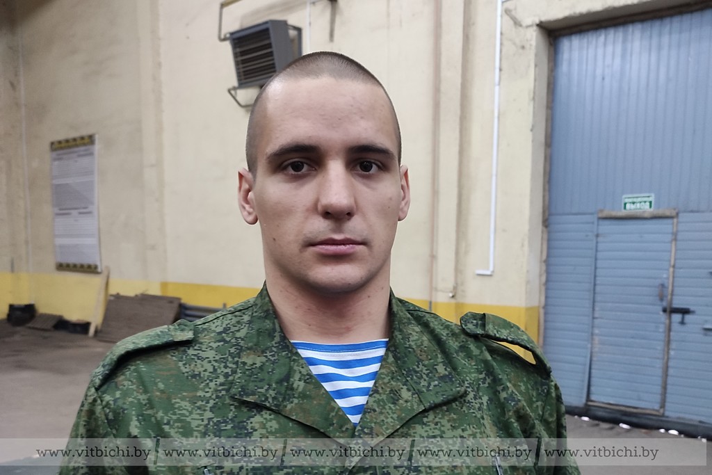 – «На гражданке» я вставал в полпятого утра, ведь первая тренировка, а мастер спорта по плаванию, начиналась в бассейне «Молодость» в шесть утра, а предшествовала ей получасовая разминка в тренажерном зале. И так ежедневно, кроме воскресенья. Чтобы достичь результатов в спорте, нужно прилагать максимум усилий. Мне удалось стать призером чемпионатов и кубков Республики Беларусь, победителем международных турниров среди юниоров. И в армии не подкачаю. Буду служить достойно! – говорит Александр. – Армейский распорядок мне не в тягость, я привык соблюдать режим. Непривычно тем парням, которые «на гражданке» по утрам вместо того, чтобы встать по первому звонку будильника, переставляли время, каждый раз веря, что за эти пять-десять минут сумеют выспаться, а в итоге даже проспать могли на учебу или на работу. Но в армии проспать невозможно – утренний подъем по команде отработан до автоматизма. После зарядки в 6.15 начинается утренняя 3-километровая пробежка. Потом мы возвращаемся в казармы, которые к этому времени проветрились, заправляем кровати, приводим себя в порядок и идем на завтрак, который длится с 7.50 до 8.30. Считаю, что кормят здесь сытно. Мои родители Наталья и Иван Набоковы за меня спокойны. У нас налажена обратная связь. Новобранцам разрешают звонить близким, рассказывать, как проходит день, чем занимаются их сыновья. Хотел бы я остаться в армии после срочной службы, пока не думал об этом. У меня востребованная специальность маркетолог-экономист, которую я получил в Витебском государственном технологическом университете, до призыва работал в облгазе.