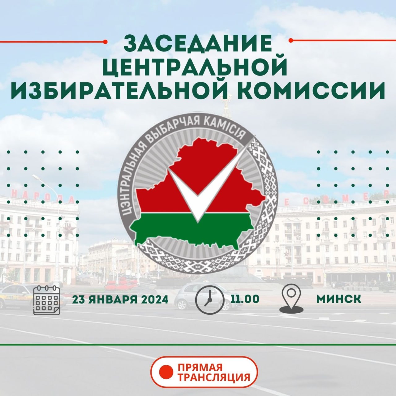 Онлайн-трансляция заседания будет доступна на сайте ЦИК Беларуси.