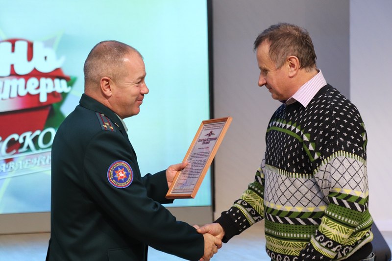 Из рук главного спасателя области родители и даже дедушка в знак признательности за достойное воспитание настоящих граждан Беларуси, с честью выполняющих профессиональный долг, получили 70 Благодарственных писем и цветы.