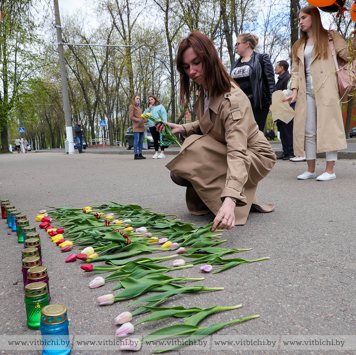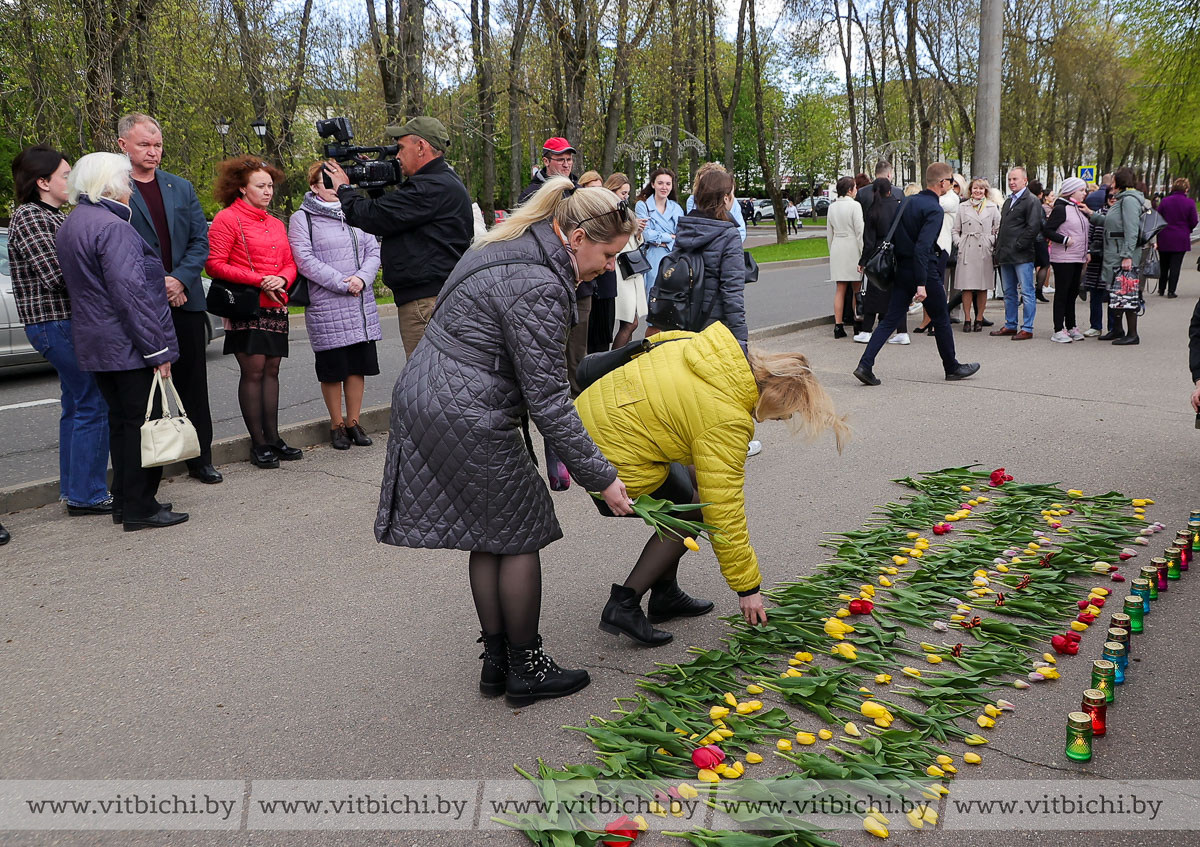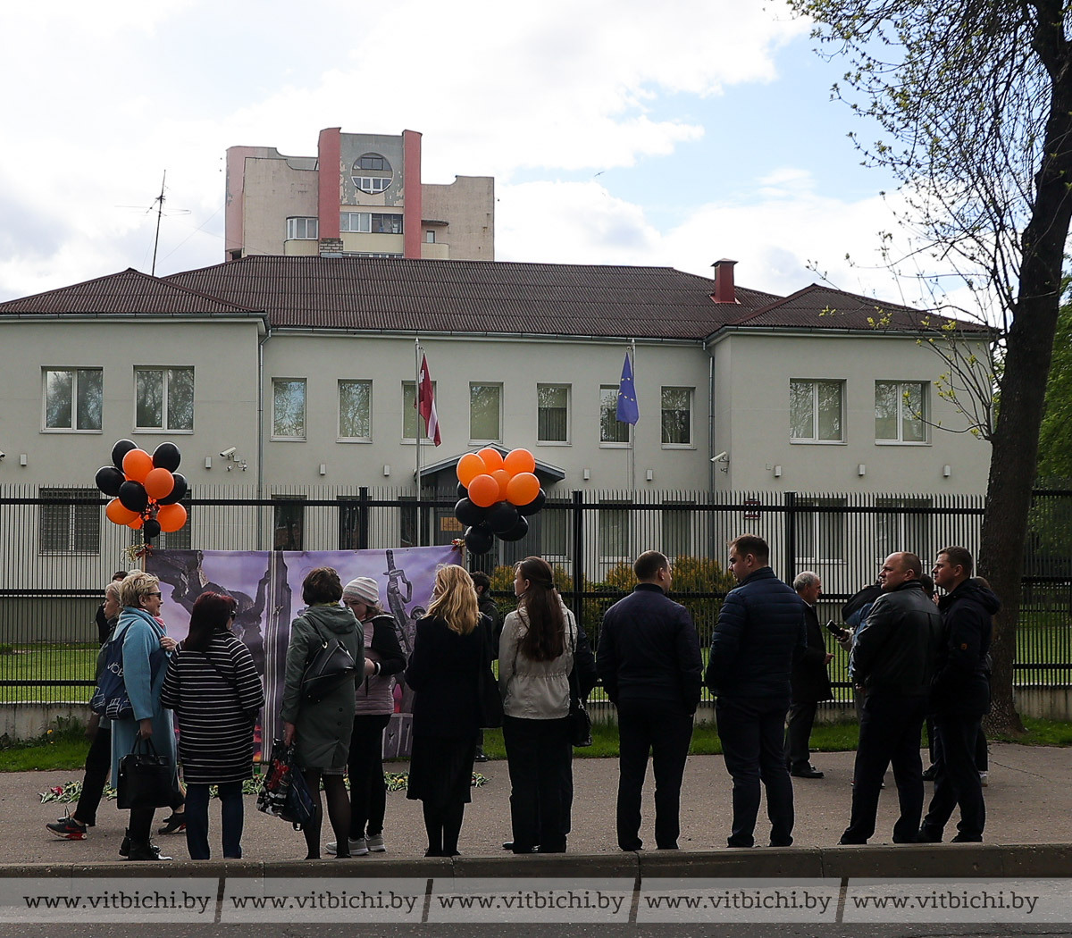 Молодые люди развернули возле Латвийского Консульства изображение монумента. Поместили рядом лампады памяти и живые цветы. К акции присоединились активисты Белорусского общественного объединения ветеранов, бывшие малолетние узники. Солидарность проявили и представители трудового коллектива РУП «Витебскэнерго», а также многочисленные прохожие.