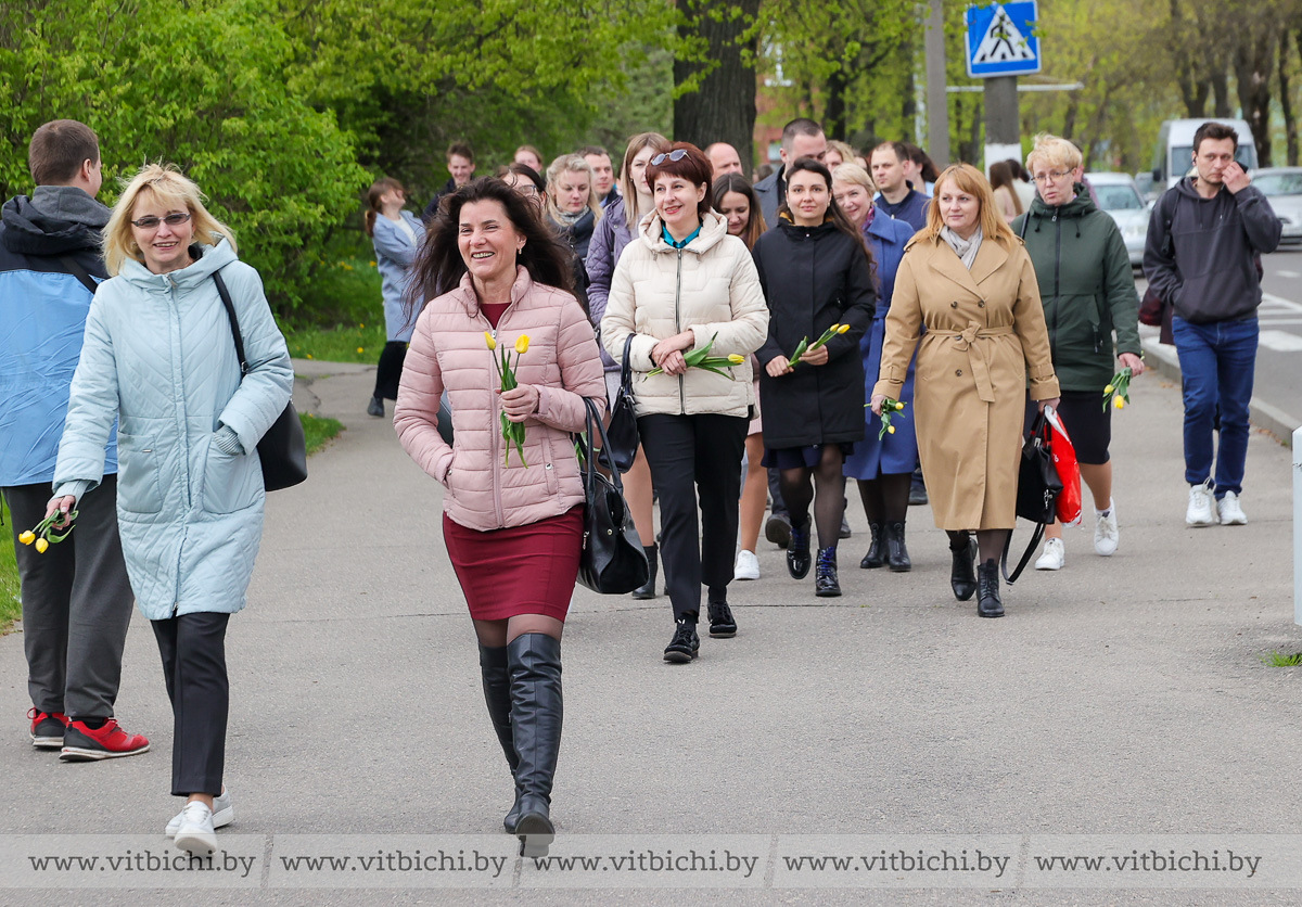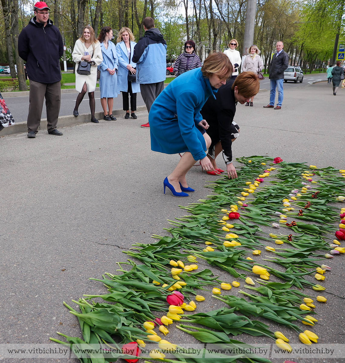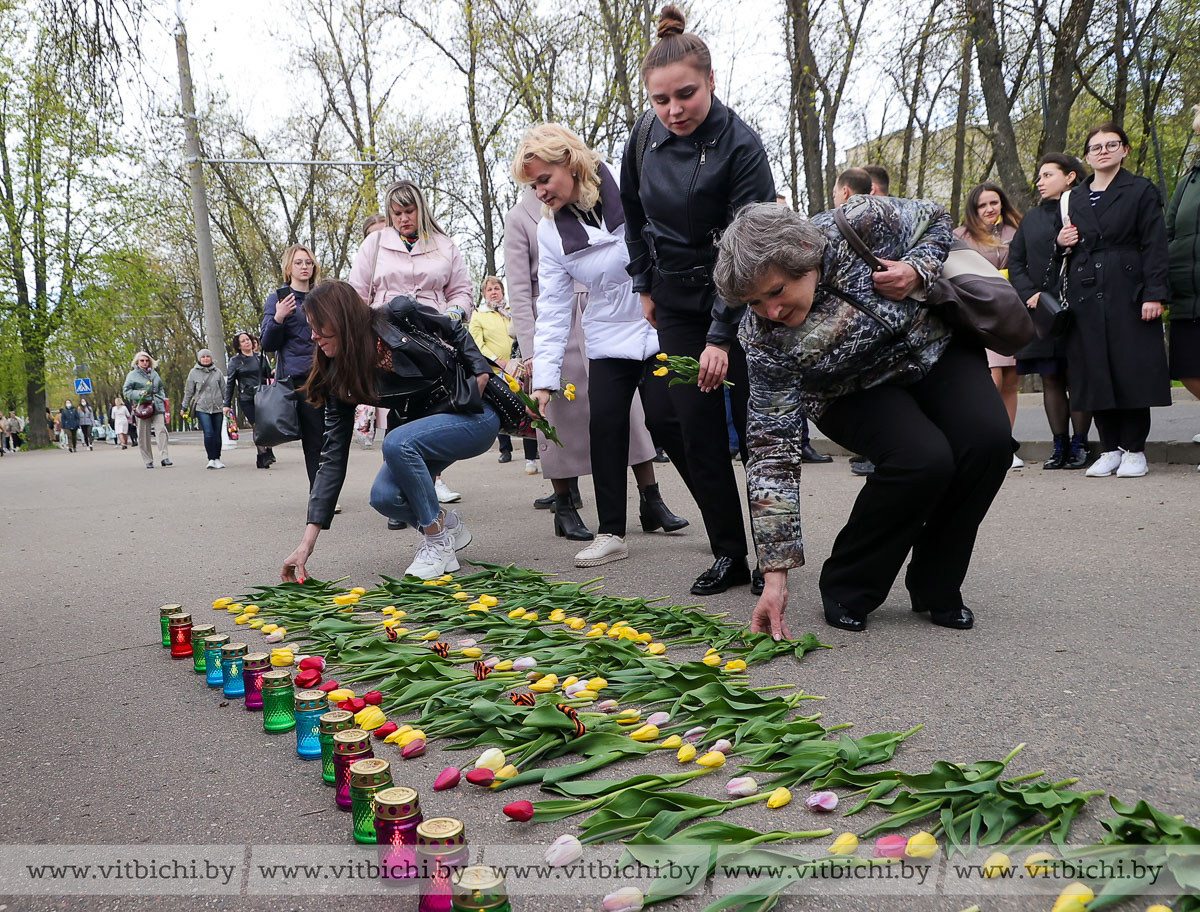 Молодые люди развернули возле Латвийского Консульства изображение монумента. Поместили рядом лампады памяти и живые цветы. К акции присоединились активисты Белорусского общественного объединения ветеранов, бывшие малолетние узники. Солидарность проявили и представители трудового коллектива РУП «Витебскэнерго», а также многочисленные прохожие.