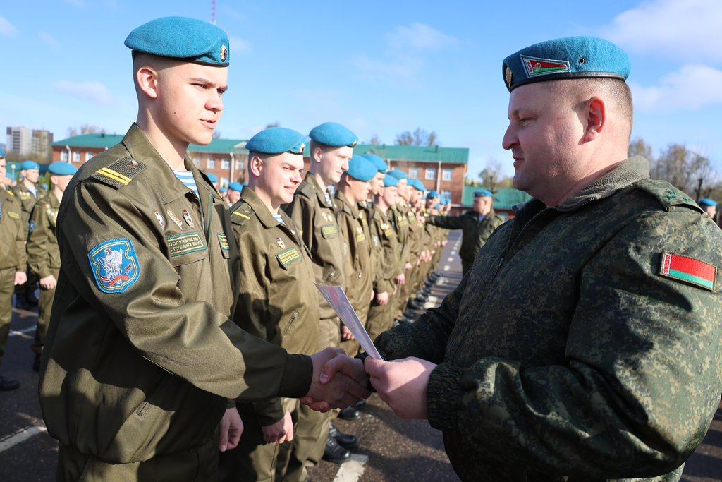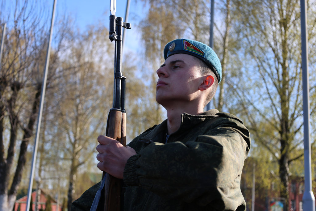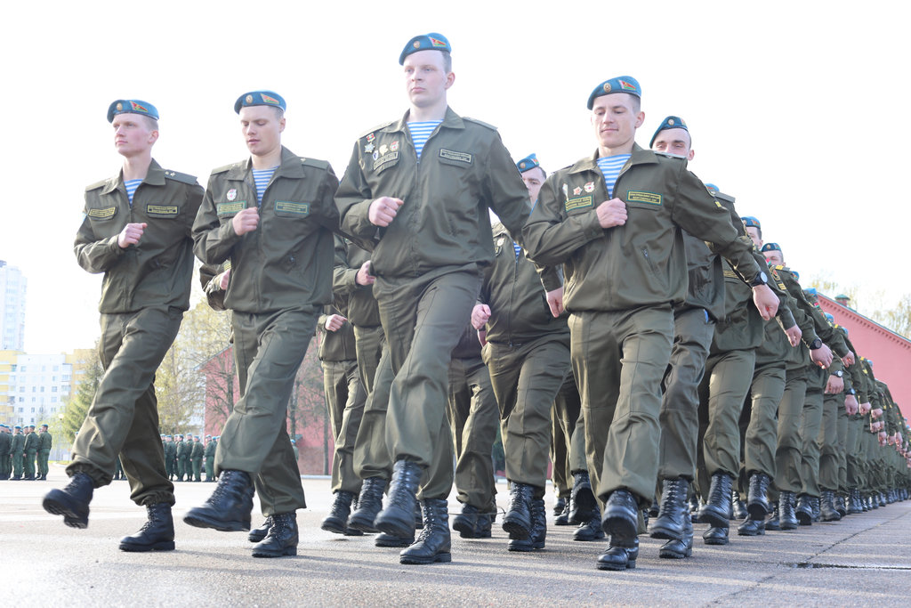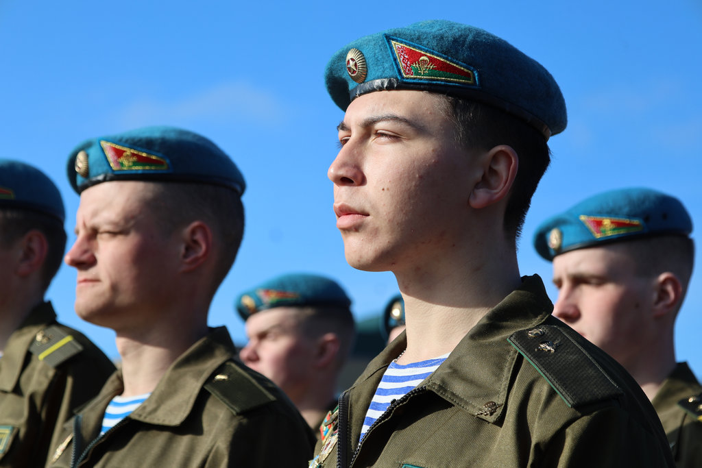 Более 300 военнослужащих, отслуживших установленный срок срочной военной службы, попрощались с боевым знаменем 103-й Витебской отдельной гвардейской воздушно-десантной бригады.